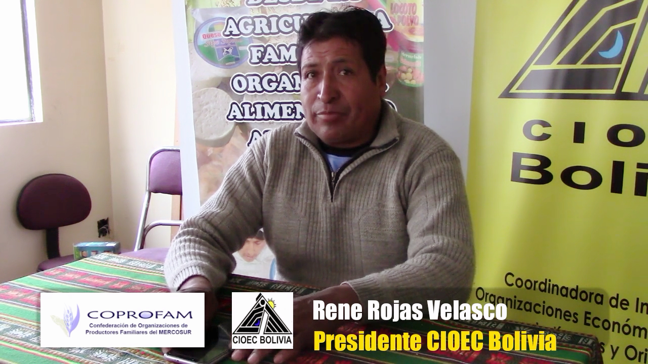 Presidente de Coordinadora de Integración de Organizaciones Económicas Campesinas de Bolivia CIOEC Bolivia, Rene Genaro Rojas Velasco, responde a las preguntas sobre políticas que se desarrollan en apoyo a la agricultura familiar en Bolivia, la participación de CIOEC en espacios de dialogo con el gobierno, las relaciones internacionales de su organización, representatividad de Coprofam para su organización y sugiere mayor presencia de estado en apoyo a loas agricultores familiares.