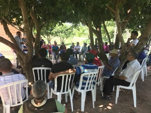 El secretario general, Gabino Medina; el secretario general adjunto, Ángel Giménez; el secretario de Finanzas, Florentino Martínez y Silvio Sanabria, coordinador departamental de la Organización Nacional Campesina (ONAC) visitó la Colonia Ex-Mezquita, ubicada en el departamento de San Pedro, y se reunieron con líderes comunitarios y agricultores locales. Los objetivos del encuentro, llevado a cabo en horas de la tarde del jueves 21 de marzo, son conocer los problemas que afectan a la comunidad y a sus pobladores, fortalecer la organización de base y coordinar acciones para buscar solución. En la reunión participaron más de setenta agricultores familiares de la comunidad, entre adultos, mujeres y jóvenes.