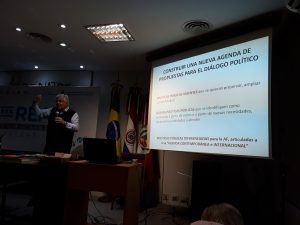 En el momento siguiente al análisis de los dirigentes, se dio lugar en la mesa a los representantes de los gobiernos, en sus ministerios y secretarias de agricultura, de los países abordados en los estudios que también son coordinadores nacionales de la REAF. Hicier. Hicieron parte Santiago Hardie, de Argentina, Márcio Madalena, Brasil, Fracisca Silva, de Chile, Ursina Leguizamón, del Paraguay y José Ignacio Olascuaga del Uruguay. De manera general analizaran las cuestiones apresentadas por los dirigentes en el momento anterior, contestaron sobre que ya esta se encaminando con relación a ellas y se comprometieron a analizar más cuidadosamente, en las esferas gubernamentales de sus países, las demás cuestiones sobre los estudios entregados.