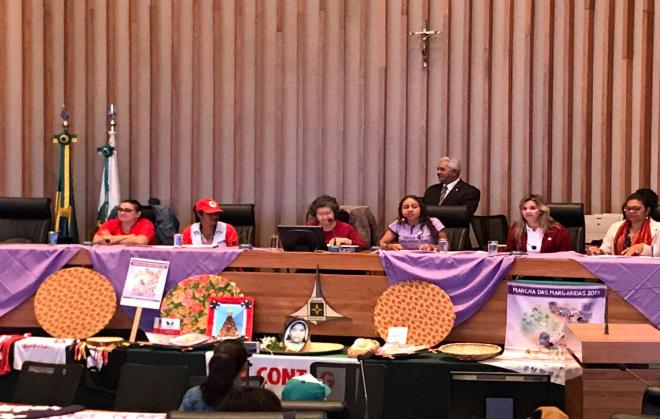Ayer, día 25, se realizó el último evento del ciclo que marcó el lanzamiento, o llamamiento, de la Marcha de las Margaritas en todos los estados brasileños. El evento en cuestión ocurió en la Cámara Legislativa del Distrito Federal, estado que recibirá la Marcha los días 13 y 14 de agosto, y sucedió por medio de una Sesión Solemne solicitada por la diputada distrital Arlete Sampaio (PT / DF), fuerte partidaria de la movilización.