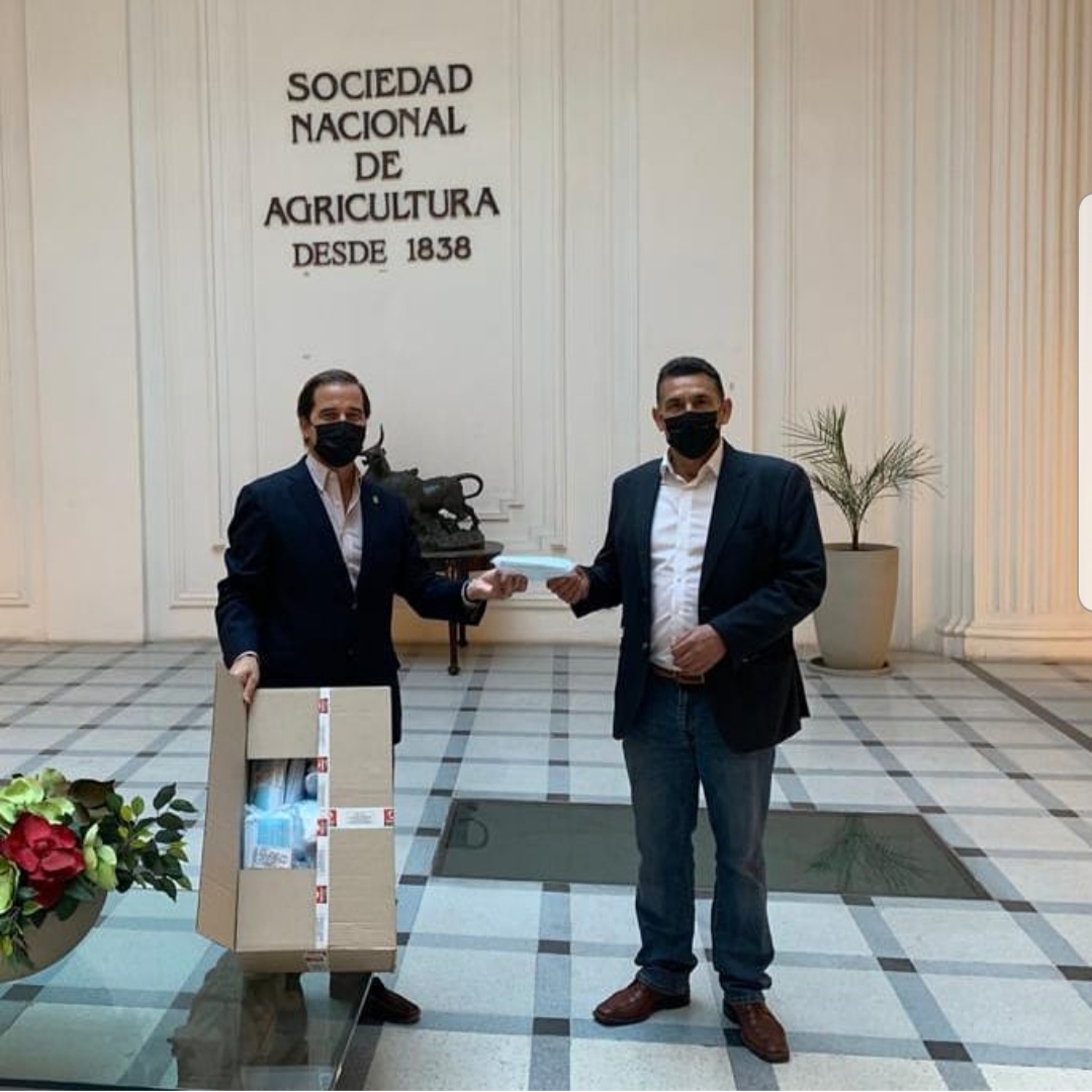 La entrega de las mascarillas fue posible gracias a la donación de la empresa de maquinarias agrícolas Lovol, y su representante en Chile, Dercomaq. El aporte fue encabezado por el presidente de la SNA, Ricardo Ariztía y el presidente de MUCECH, Orlando Contreras.