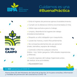 En el marco del grupo de Buenas Prácticas Agropecuárias, del cual FAA forma parte, se lanzó la campaña Cuidarnos es una #BuenaPráctica, con más infomación específica para agricultores y agricultores familiares