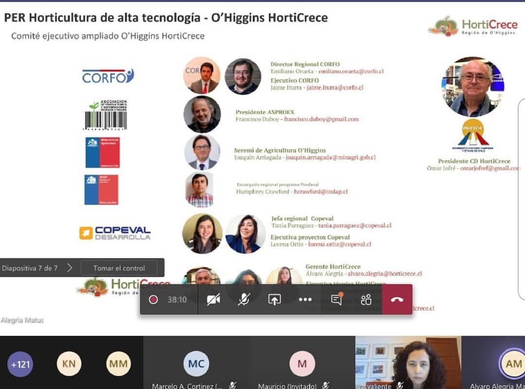 Este encuentro se realizó de manera online, teniendo en consideración las medidas sanitarias vigentes en el país que prohíben el contacto directo entre varias personas. En la presentación, el director de la gremial y presidente de Horticrece enfatizó en las implicancias que ha tenido la pandemia en el sector hortícola, principalmente en relación con la necesidad de innovación en dicho sector. Así también, se consideró la importancia de la reactivación económica que se debe desarrollar, tanto en la región de O’higgins, como en el país.
