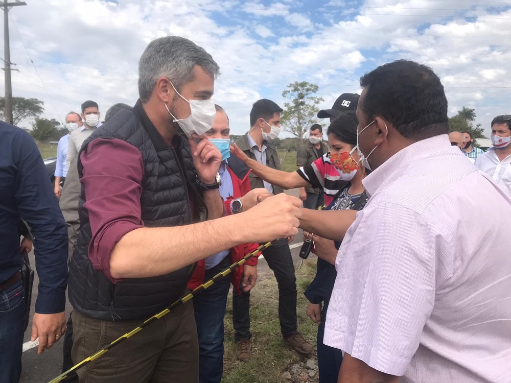 El pasado lunes 27 de julio, se habilitó oficialmente el tramo de la pavimentación de caminos vecinales entre los distritos de Carayao y R.I.3 Corrales, ubicada en el departamento de Caaguazú. En el acto de inauguración además del presidente de la Republica, Mario Abdo Benítez, también estuvieron presentes varias otras autoridades del Ejecutivo y Legislativo, como ministro de Obras Públicas, presidentes de las entidades binacionales de Itaipu y Yacyreta, senadores, diputados y autoridades departamentales y distritales.