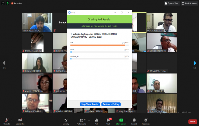 Las Asambleas Generales Extraordinarias de CONTAG celebradas el martes (25) aprobaron la realización del 1er Congreso Virtual en la historia de la Confederación Nacional de Trabajadores Rurales Agricultores y Agricultoras Familiares (CONTAG), programado para los días 06, 07 y 08 de abril de 2021. Una demostración de que el Movimiento Sindical de Trabajadores Rurales (MSTTR) se reinventa incluso frente a las circunstancias provocadas por una pandemia global (Covid-19).