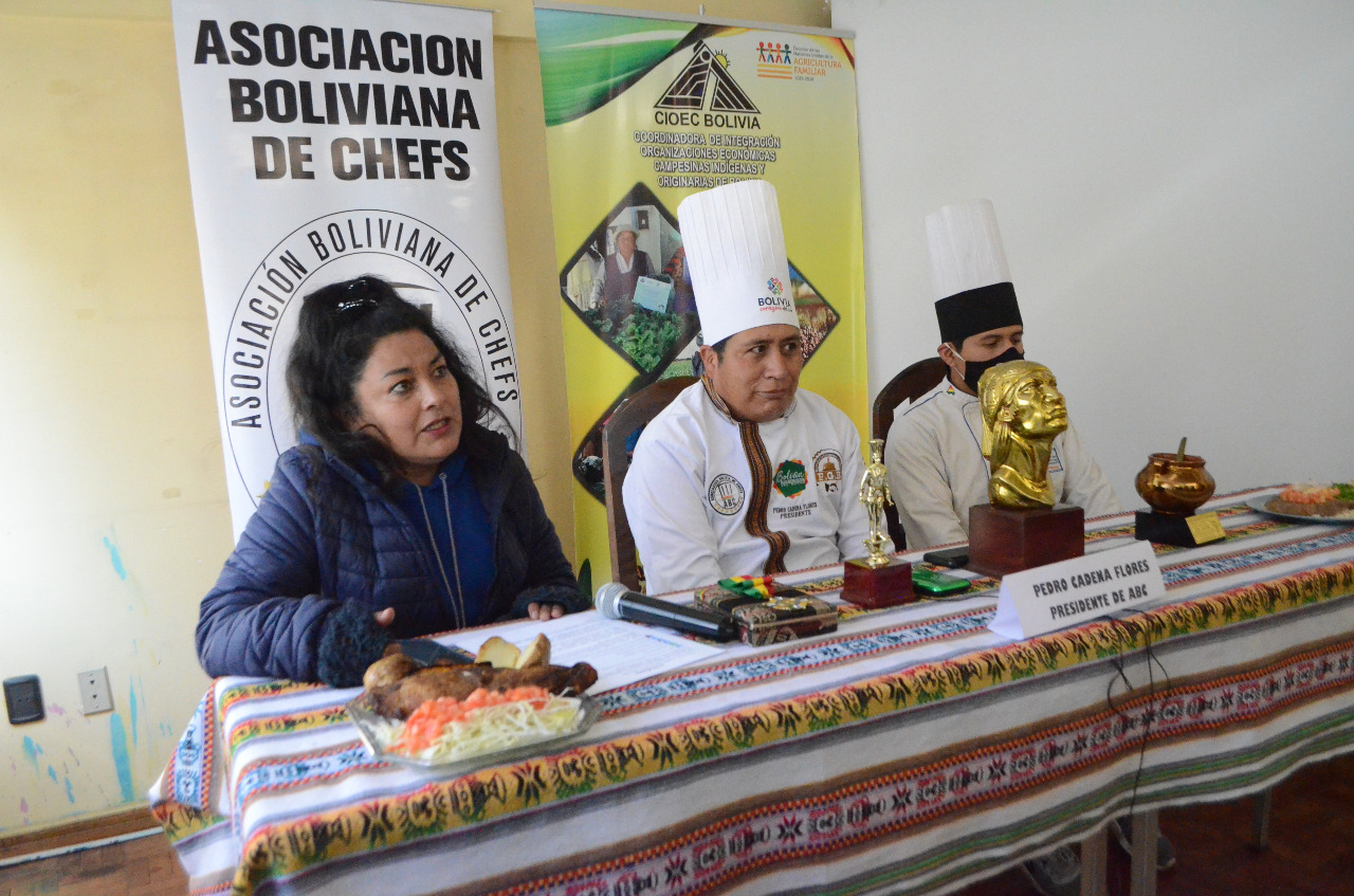 Este lunes, lanzaron la convocatoria para premiar a los destacados Productores de la Agricultura Familiar y también en el sector culinario a los mejores chefs, programas culinarios de TV y el restaurante del año. El anuncio fue realizado por el presidente de la Asociación Boliviana de Chefs (ABC), Pedro Cadena, y por Sandra Marca Coordinadora de la CIOEC Bolivia que lidera la Red de Organizaciones de Productores Agrícolas y Forestales (ROPAF).