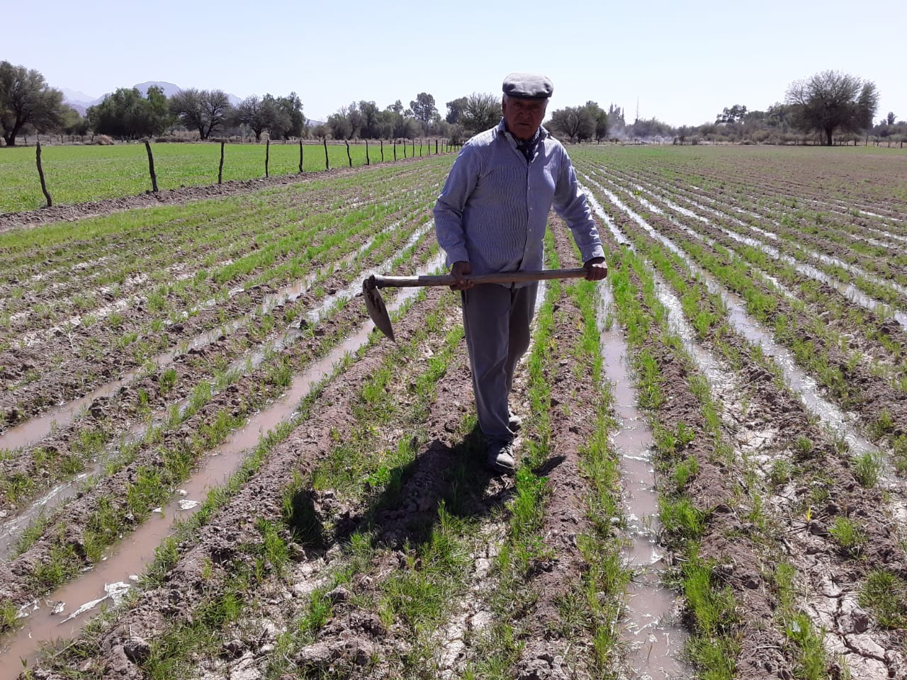 Fue así que los productores de la zona comenzaron a trabajar junto a la agencia de extensión de Jáchal del INTA[1]. Junto a la Ing. María Teresa Fernández que es quien se vinculó con ellos, analizaron las posibilidades que tenían y decidieron cambiar la producción de la zona. Así, comenzaron a sembrar alfalfa y comino, y debieron buscar otras formas de trabajar. “Desde la llegada de FAA, los productores nos organizamos, formamos una filial de la entidad y mantuvimos un contacto muy fluido con la EEA de Jáchal, que si bien ya existía antes de eso, nosotros empezamos a dialogar y a la fecha tenemos contacto semanal con ellos. Nos asesoran, nos dan apoyo técnico y nos han permitido hacer muchos cambios a los agricultores”, cuenta Justo. Y precisa que también hay productores ganaderos que crían vacas, ovejas y cabras, que reciben asistencia técnica para mejorar sus producciones.