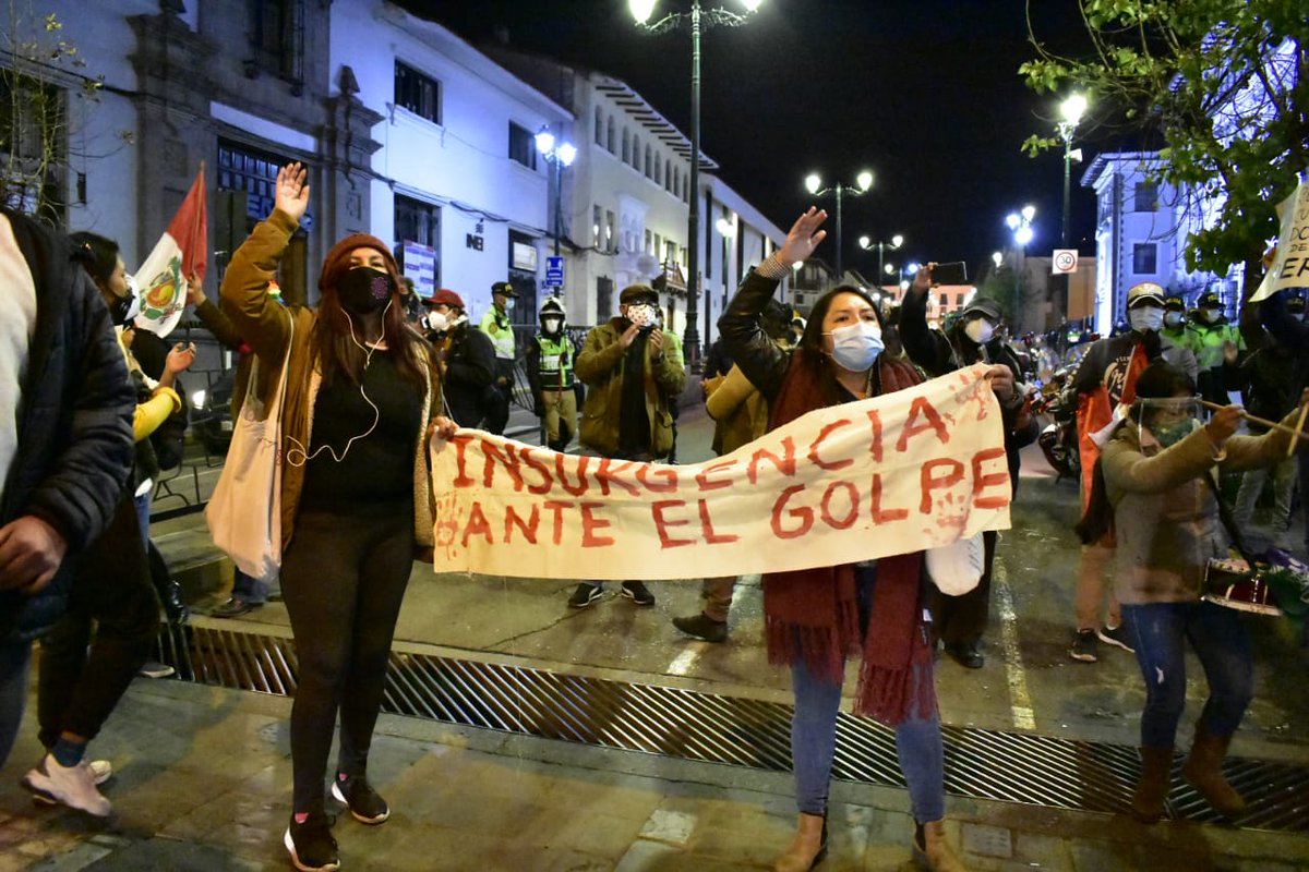 En la ciudad del Cusco, la principal ciudad turística del país, las manifestaciones no se hicieron esperan. Allí, diversas organizaciones populares y políticas salieron a las calles a rechazar el golpe y repudiar a Manuel Merino, actual presidente del Congreso y a los congresistas que apoyar la vacancia a quienes tildaron de corruptos.