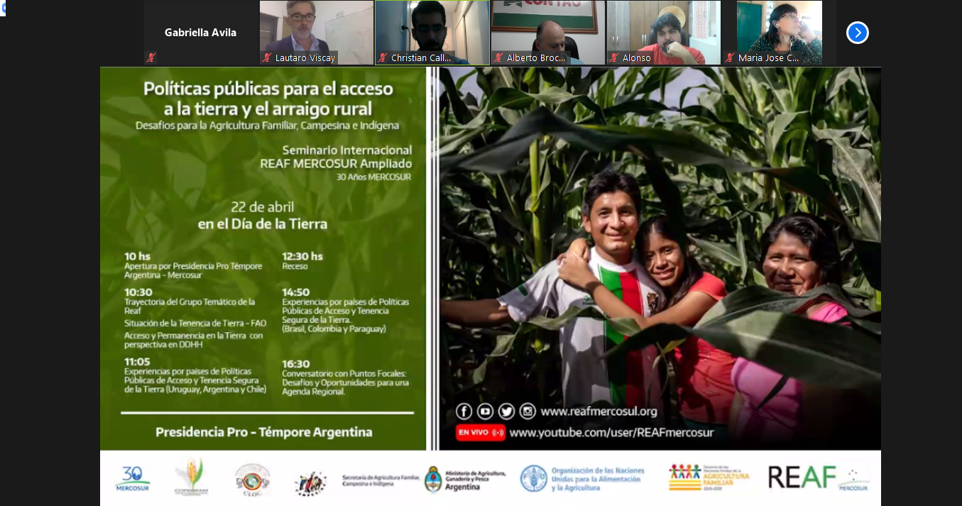 A Reunião Especializada da Agricultura Familiar do Mercosul Ampliado (REAF), sob a presidência pró-tempore da Argentina neste semestre, escolheu propositalmente o dia 22 de abril, instaurado pela ONU em 2009 como Dia Internacional da Terra, para realizar o Seminário Internacional “Políticas Públicas para el Acceso y Arraigo en la Tierra Rural de la Agricultura Familiar, Campesina e Indígena (AFCI)”. O encontro aconteceu em formato online, devido as restrições de contato social impostas pela pandemia