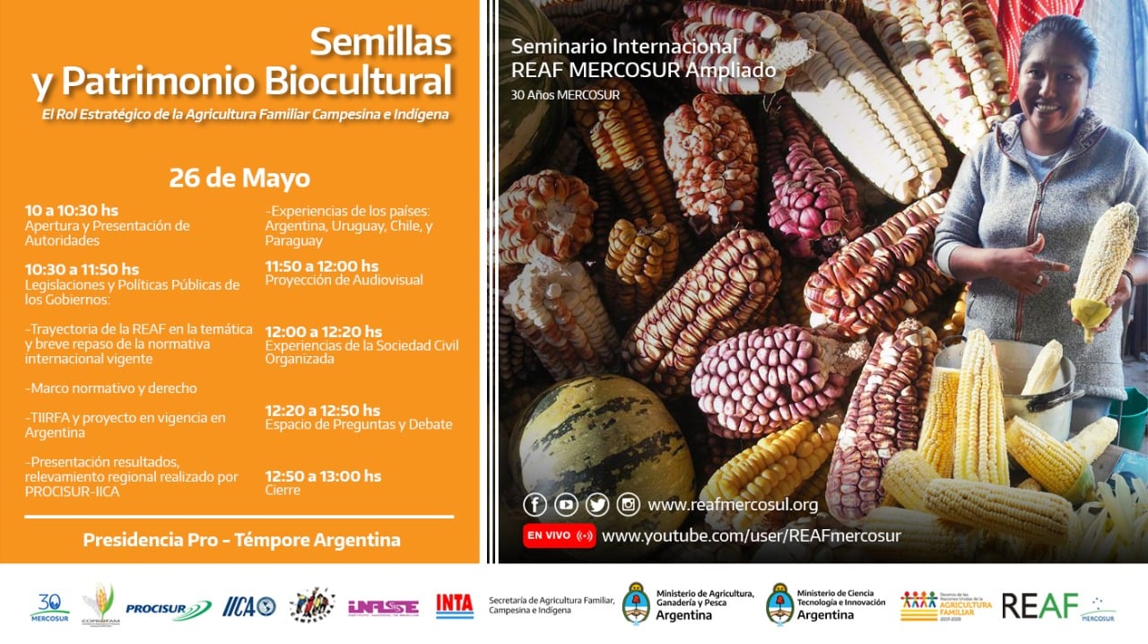 Las actividades virtuales de la XXXVI REAF, con la presidencia pro tempore de Argentina, continúan desarrollándose este mes y el próximo. Ayer, 26 de mayo, le tocó el turno al Seminario Semillas y Patrimonio Biocultural – El rol estratégico de la Agricultura Familiar, Campesina e Indígena, el cuarto evento de esta REAF, celebrado toda la mañana y parte de la tarde en la plataforma Zoom, con transmisión en vivo en el canal de Youtube de REAF. El seminario también fue grabado y se puede ver en su totalidad al final de esta nota.