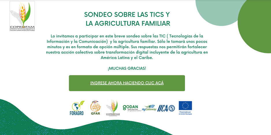 COPROFAM ha suscrito recientemente un acuerdo con el Foro de las Américas para la Investigación y el Desarrollo Tecnológico Agropecuario (FORAGRO) para trabajar en los próximos meses en actividades que aborden el uso de las Tecnologías de la Información y la Comunicación, conocidas como TICs, en las propiedades de la Agricultura Familiar, Campesina e Indígena (AFCI) de los países del Mercosur Ampliado.