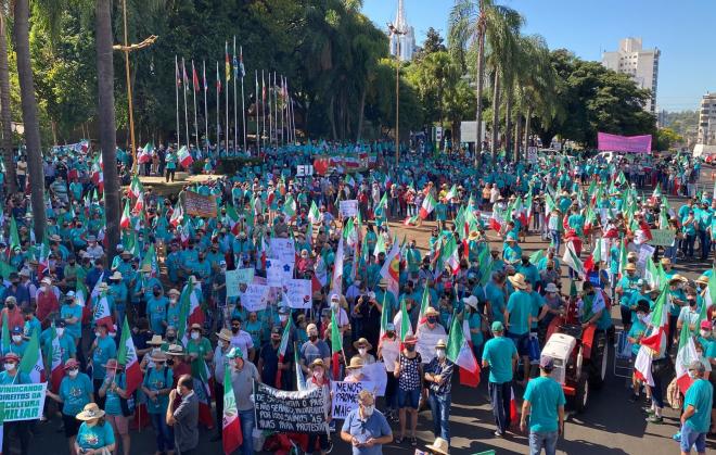 La movilización fue promovida por la Federación de Trabajadores en la Agricultura de Rio Grande do Sul (Fetag-RS), por la Macro Missões Fronteira Noroeste, Macro Central y Fetar-RS.
