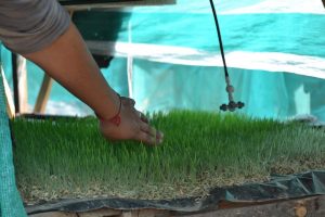 Para salvaguardar el problema de la falta de forraje para animales, debido a la emergencia hídrica que tiene en vilo a la zona, ambos emprendedores apelaron a un sistema que les garantiza total independencia de la asistencia externa: el forraje verde hidropónico, es decir, sin necesidad de cultivo en tierra. En otro rincón del predio, cubierto por una malla blanquiverde, se encuentra el invernadero que contiene ocho camellones con pasto sobre una capa alfombrada de avena que sirve para alimentar diariamente a todo el ganado. Cada camellón entrega 30 kilos de forraje, a partir de 3 kilos de semilla de avena cultivada y apenas dos litros de agua. El riego automático y los paneles fotovoltaicos para su funcionamiento fueron proporcionados por INDAP.