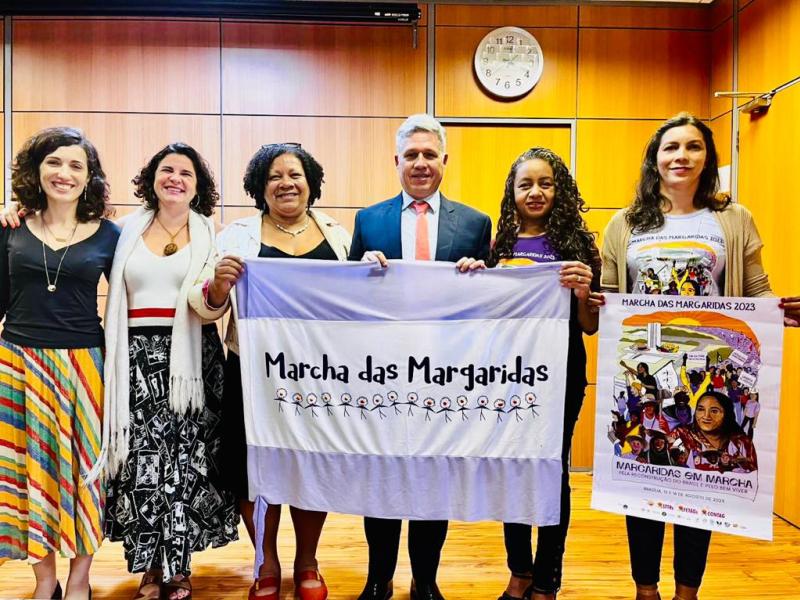 La Secretaria de Mujeres de la Confederación Nacional de Trabajadores Rurales Agricultores y Agricultoras Familiares (CONTAG), Mazé Morais, y representantes de organizaciones socias de la Marcha, estuvieron en audiencia el jueves (26 de enero de 2023), con el Ministro de Desarrollo Agrario y Agricultura Familiar, Paulo Teixeira, para presentar y discutir la Marcha das Margaridas 2023, a realizarse los días 15 y 16 de agosto de este año, con el lema: Margaridas en Marcha por la reconstrucción de Brasil y por el buen vivir.