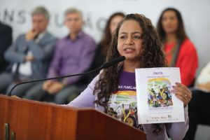 Otra agenda ampliamente defendida por Margaridas es la salud, y la ministra Nísia Trindade anunció varias políticas y programas que están siendo priorizados por el gobierno y que están directamente relacionados con las demandas de las mujeres del campo, los bosques y las aguas. “Recibo estos 13 ejes con mucha alegría. Y la salud está relacionada con todos. Necesitamos alimentos sanos, agua limpia, vacunas, atención primaria, farmacia popular, entre otras cosas. Fortalecer el SUS es una prioridad y necesitamos un pacto de toda la sociedad por una salud integral y de calidad para todos”.