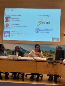 Además de las asambleas y trabajos grupales, los jóvenes presentes en el Foro también sostuvieron dos reuniones paralelas con autoridades de la FAO y el Fondo Internacional de Desarrollo Agrícola (FIDA), para hablar directamente sobre las necesidades y demandas de los jóvenes de diferentes continentes representados allí por distintas organizaciones. Y también hubo un encuentro para intercambiar información y experiencias con jóvenes de otras organizaciones que fueron a Roma con el apoyo del FRM.
