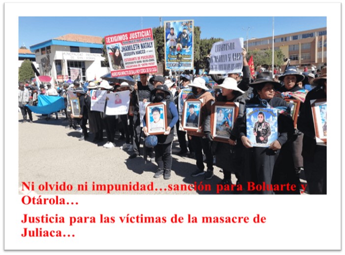 Y a un año de la masacre, reiteramos que no habrá ni olvido ni impunidad y demandamos una sanción ejemplar para Dina Boluarte y Alberto Otárola, así como a los responsables materiales de los asesinatos.