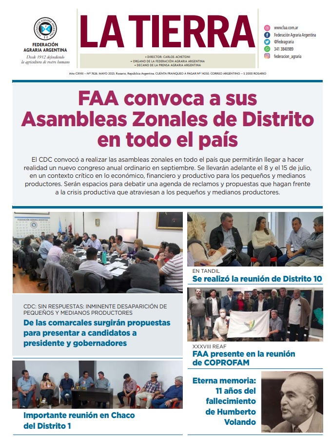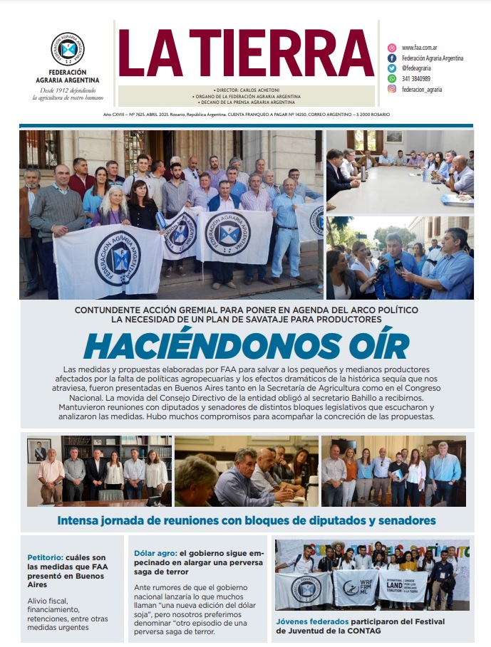 Esta semana, Federación Agraria Argentina difundió el ejemplar correspondiente al mes de abril de su periódico institucional, La Tierra. Vea la edición completa aquí: LA TIERRA abril 2023 OK2