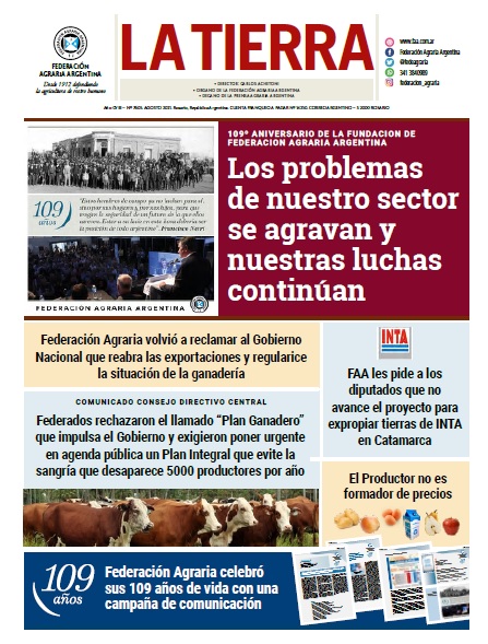La semana pasada, Federación Agraria Argentina difundió la edición de agosto de su periódico La Tierra. Acceda a dicha edición aquí: La Tierra. Agosto 2021