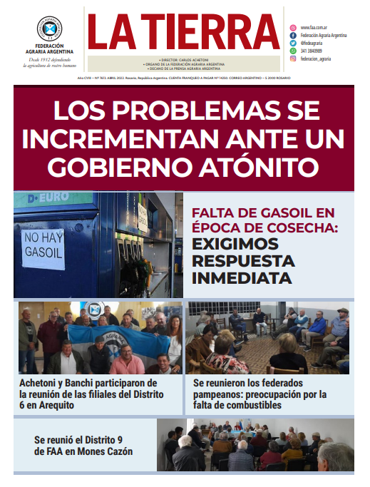Esta semana, la Federación Agraria Argentina difundió el ejemplar de febrero de su periódico La Tierra. Puede ver la publicación completa aquí: La Tierra Febrero 2022
